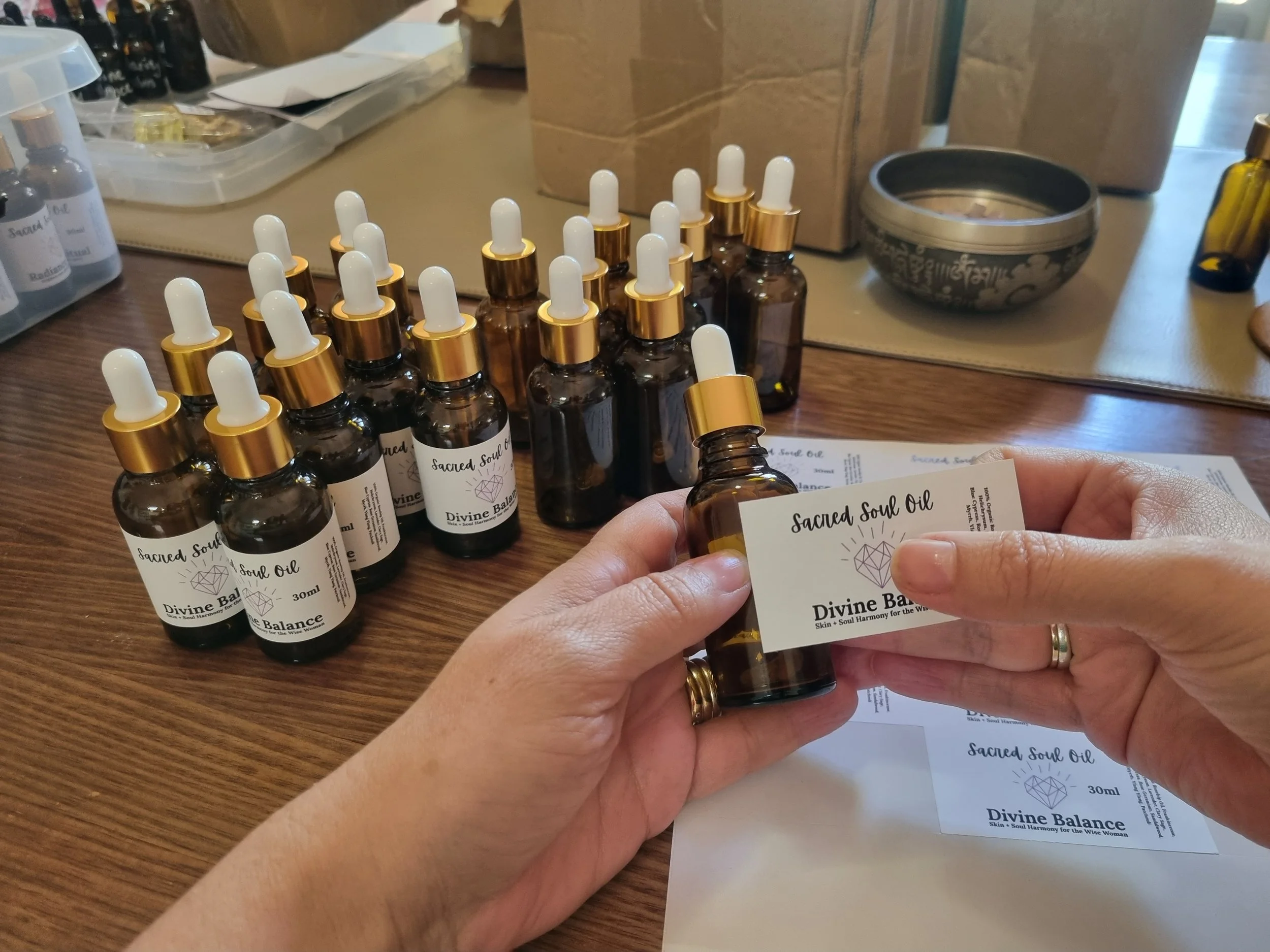 Every bottle is hand poured by me in small batches, with care and presence.
